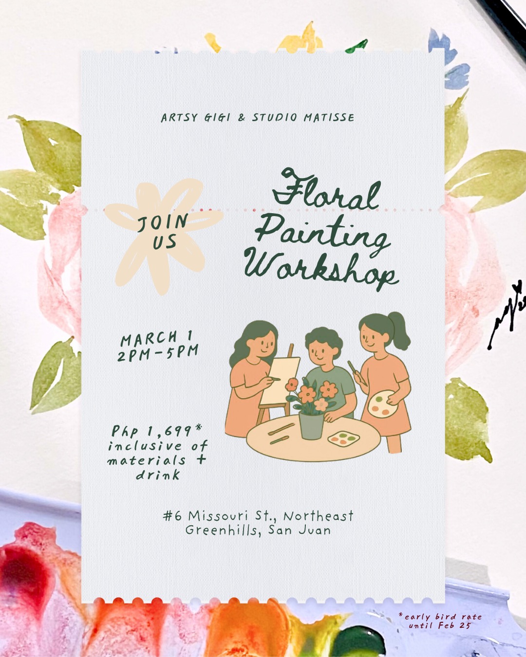 Join us for a floral painting workshop this March 1, 2026 @studiomatisse.ph in partnership with @studio.artsygigiph 🎨