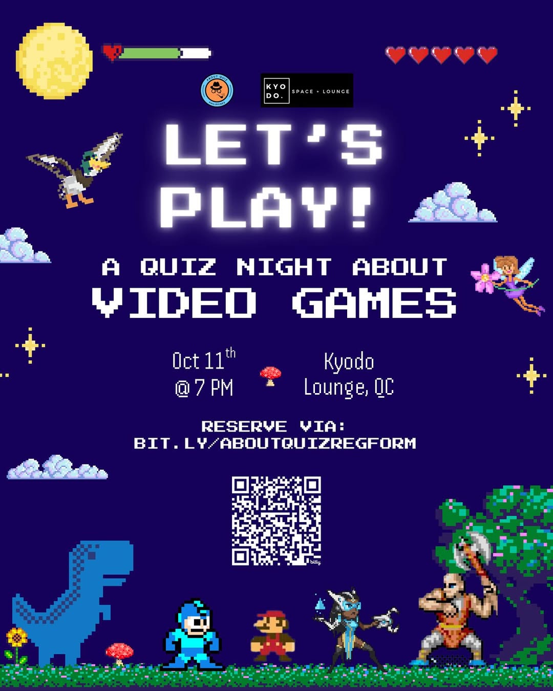 🎮 👾 Welcome heroes, villains, and button-mashers! Whether you’re a group of Italian brothers who like to smash things, a Call of Duty commander, or just here for the vibes, prepare to test your skills across worlds pixelated and epic in Let’s Play!: A Quiz about Video Games happening this coming Saturday, October 11 @ 7 PM in Kyodo Lounge in Quezon City. @kyodolounge